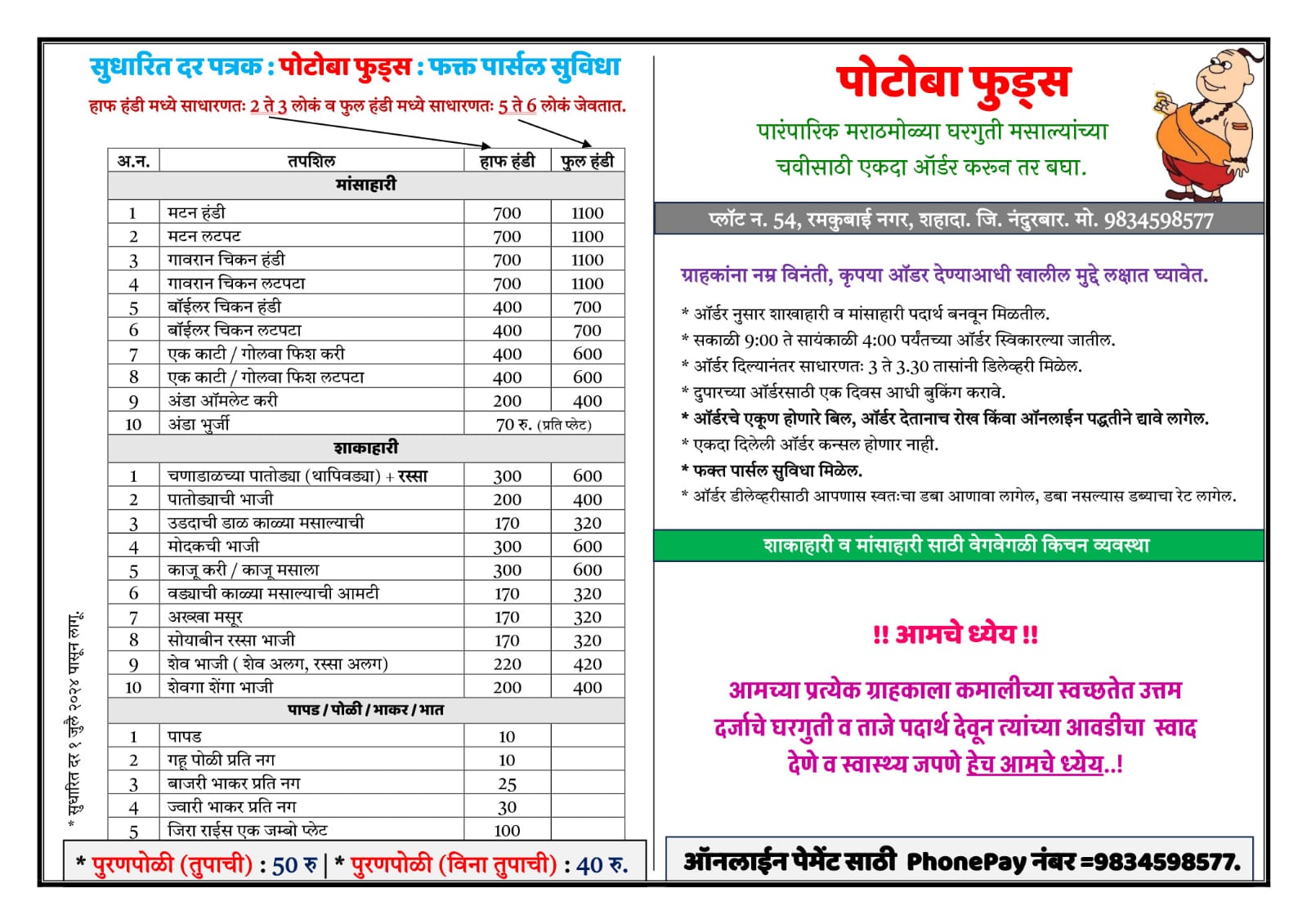 सर्व पदार्थ फक्त ऑर्डर प्रमाणे घरगुती पद्धतीने बनवून दिले जातील.